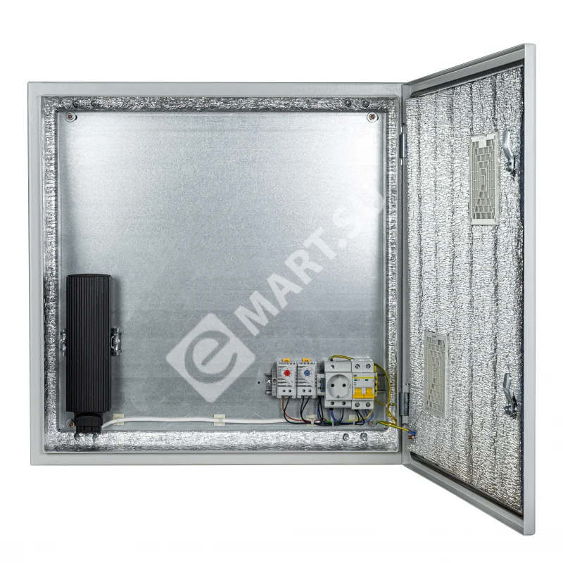 Климатический навесной шкаф Mastermann-4УТПВ-П (Ver. 2.0) IP 54 с вентиляторными решетками (пассивная вентиляция) и защитным реле от "холодного пуска". Предназначен для использования в любых климатических условиях на улице (-55°С +50°С)