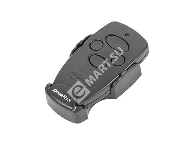DoorHan Transmitter 4 — 4‑канальный пульт дистанционного управления для ворот и шлагбаумов, рассчитанный на надежную работу в популярном диапазоне 433,92 МГц и совместимость с автоматикой DoorHan, а также с оборудованием других производителей при использовании радиоприёмника DoorHan. Алгоритм динамического кода KeeLoq с 16 млн комбинаций обеспечивает высокий уровень защиты от несанкционированного копирования.