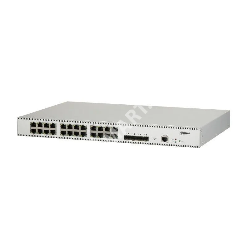 Dahua PFS5428-24GT - 24 портовый коммутатор, управляемый, уровня L2+. 24 портов 10/100/1000 Base-T. 4 порта 1000/10000 Base-X SFP+. Питание: AC 100~240В. Размеры: 440x300х44 мм.