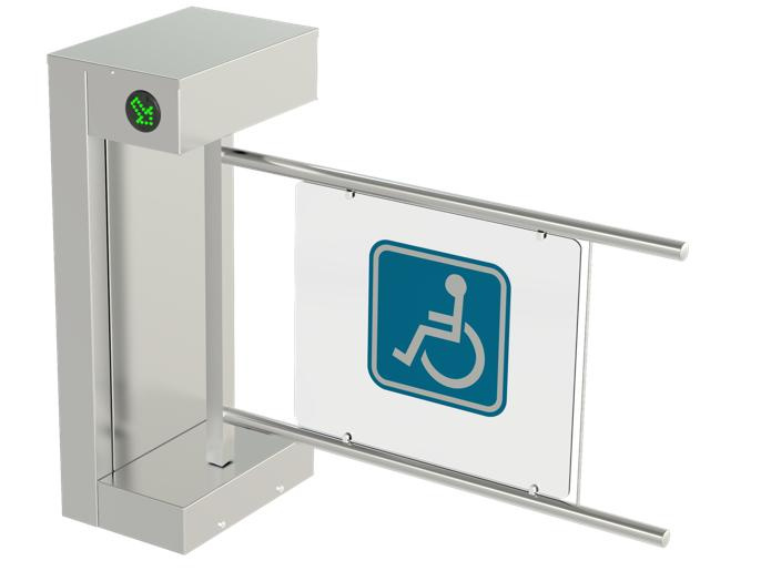 CAME SALOON 705 - Турникет-калитка МГН моторизованная. Корпус - нержавеющая сталь AISI 304. Оснащена платой управления и светодиодными указателями прохода. Сервопозиционный электропривод створки с определением препятствий и автоматической разблокировкой при отключении электроэнергии. Створка 900 мм с информационной вставкой. Время открытия 2.2 сек. Встроенный блок питания.