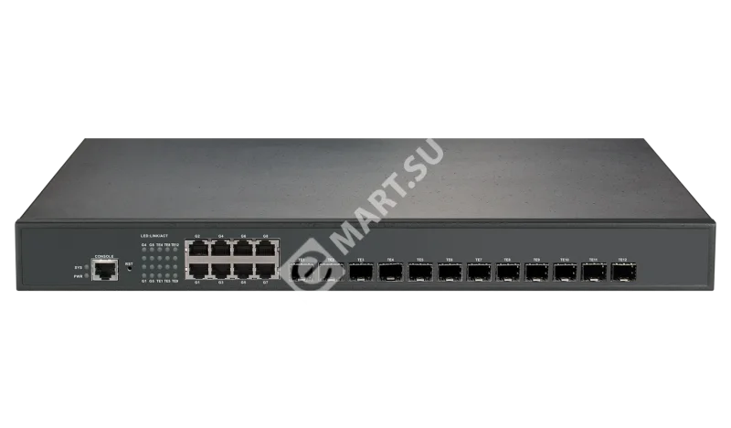 Сетевой коммутатор RVi-2NSM8G-12SP - это стекируемый 20 портовый коммутатор уровня L3. предназначен для соединения нескольких узлов компьютерной сети в пределах одного или нескольких сегментов, обеспечивающий высокую производительность и надежность сети. Коммутатор поддерживает технологию управления уровня 3, что позволяет ему работать как маршрутизатор, перенаправляя трафик между сетями. Он обеспечивает управление трафиком на основе адресов MAC, поддерживает VLAN и Quality of Service (QoS) для обеспечения надежной и безопасной передачи данных.