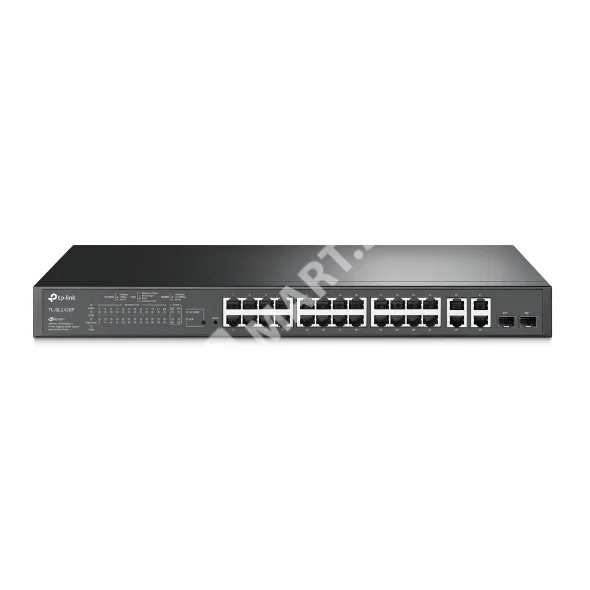 Коммутатор JetStream Smart с 24 портами RJ45 10/100 Мбит/с, 4 гигабитными портами RJ45 и 2 комбинированными портами RJ45/SFP