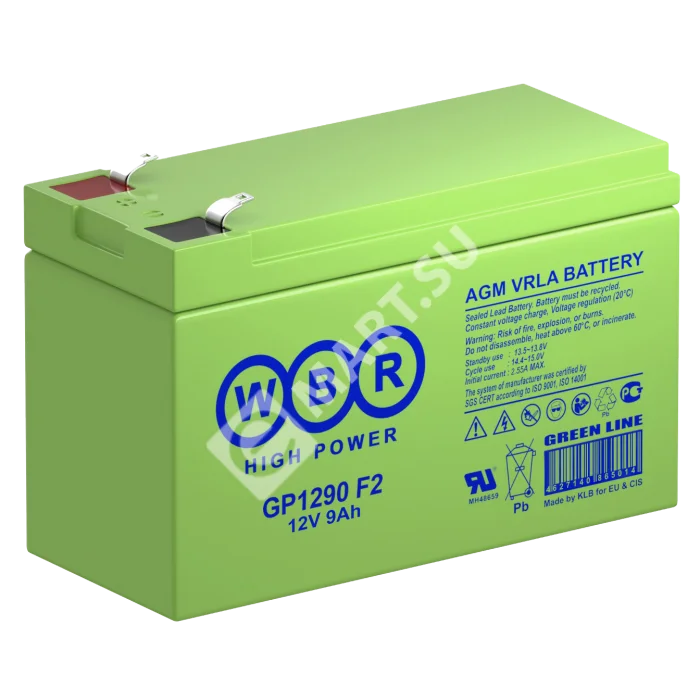 Аккумулятор GP1290 F2 - герметизированные, выполненные по технологии AGM, батареи общего применения со сроком службы до 8 лет в буферном режиме или 260 циклов заряда-разряда в циклическом режиме при 100% разряде. Эти высокоэффективные перезаряжаемые батареи не требуют обслуживания в течение всего срока службы.
