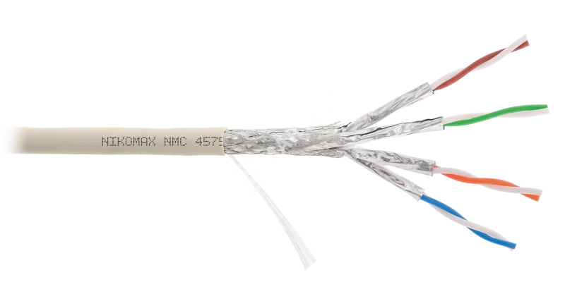 Кабель NIKOMAX S/FTP 4 пары, Кат.7a (Класс Fa), тест по ISO/IEC, 1000МГц, одножильный, BC (чистая медь), 23AWG (0,58мм), полимерный материал нг(А)-LSLTx, внутренний, светло-серый, 500м - гарантия: 5 лет /15 лет системная